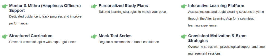 Aifer provides live classes, doubt clearance, study materials, mock tests, and mentor support to ensure your success.